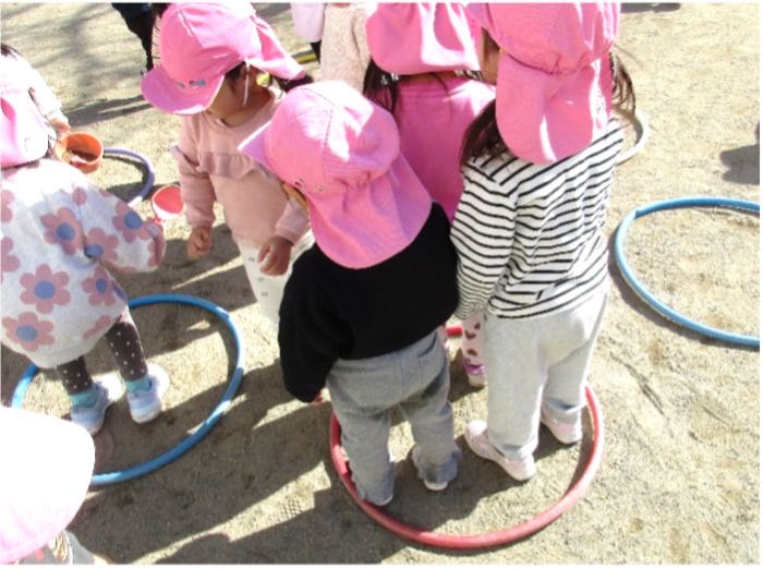 今月は、ひなまつり会に向けて大好きな絵本の劇ごっこを楽しんだり、冬の寒さに負けず、戸外で体を思い切り動かしたりする事を楽しみました。劇ごっこでは、保育士の真似をしながら、それぞれの役になりきることや音楽に合わせて元気に歌ったり踊ったりすることを楽しみました。また、年上の子たちの劇を見て、「○○も大きな声で歌う!」「かっこよかったね!すごいね!」と憧れの気持ちを持ち、練習を頑張る姿が見られました。戸外遊びでは、フラフープを使った色鬼・鬼ごっこ・かくれんぼなど、年上の子たちへの憧れからルールが簡単な集団遊びに興味を持ち始め、みんなで一緒に一つの遊びを楽しむ遊びをたくさん行いました。初めて行う遊びに、始めは戸惑う姿もありましたが、繰り返し遊んでいくうちにルールを何となく理解し始め、子どもたちの中で「かくれんぼしよ~」と声を掛け合い、遊び始める姿が見られるようになりました。来月も、簡単な集団遊びを通して、友達と体を動かして遊ぶことを楽しんでいこうと思います。