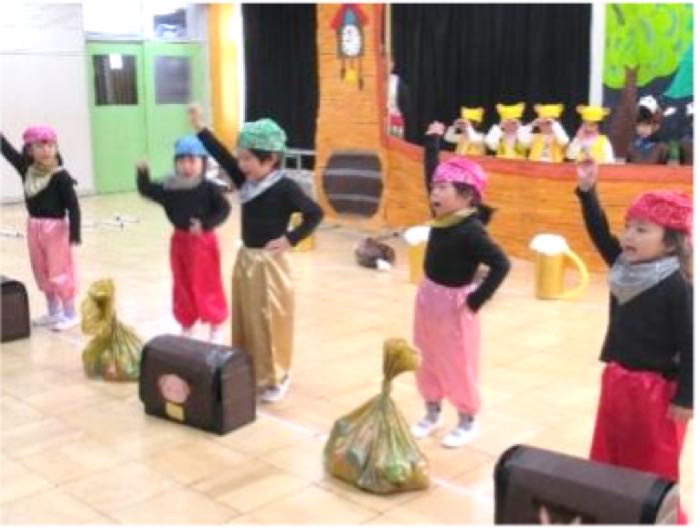 4歳児は恥ずかしい気持ちもありましたが、自信を持って堂々と表現することができ、みんなと一緒にやり遂げる嬉しさを感じていました。
