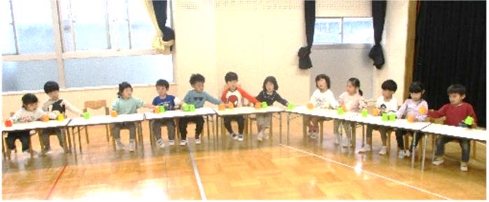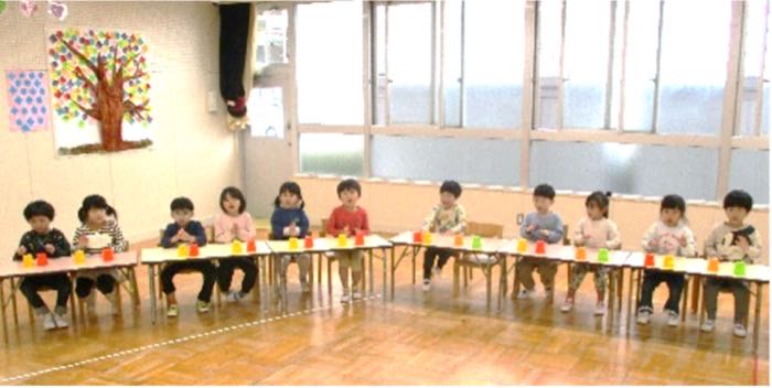4月から親しんできた絵本「ともだちほしいなおおかみくん」の劇や、初めて挑戦するカップスの練習を日頃から頑張り楽しむ姿が見られました。最初は台詞や舞台での動きが分からず戸惑いながら練習をしていた子どもたちですが、台詞を覚えることが嬉しくて、劇練習の時間以外の時でもクラスの皆で劇の台詞を言い合い楽しむ姿がありました! カップスでは、みんなでタイミングを合わせて机を叩いたり、カップを持ったりすることが難しかった子どもたちでしたが、繰り返し歌に親しみリズムに合わせることで、堂々と行い自信につながったと思います!